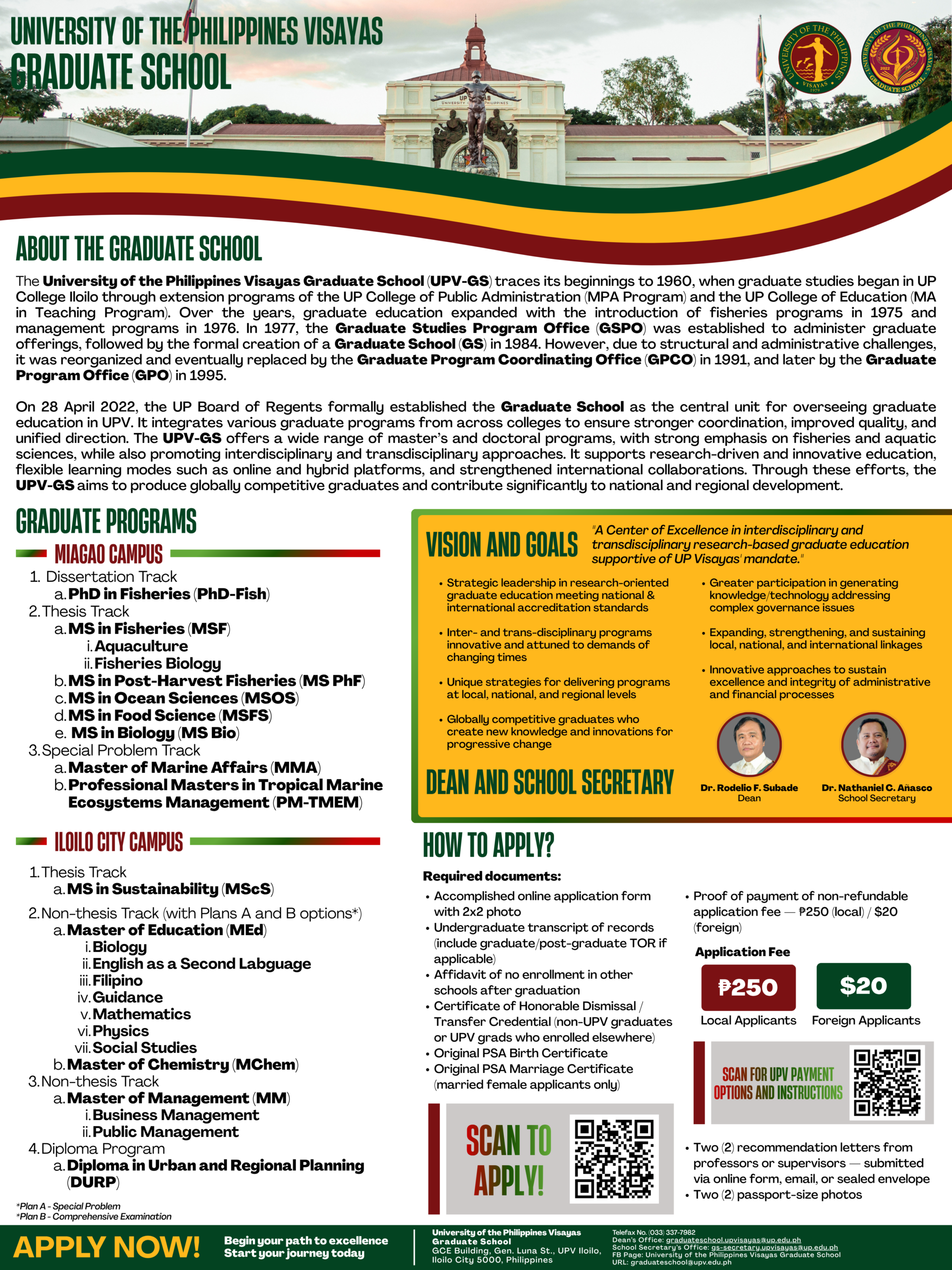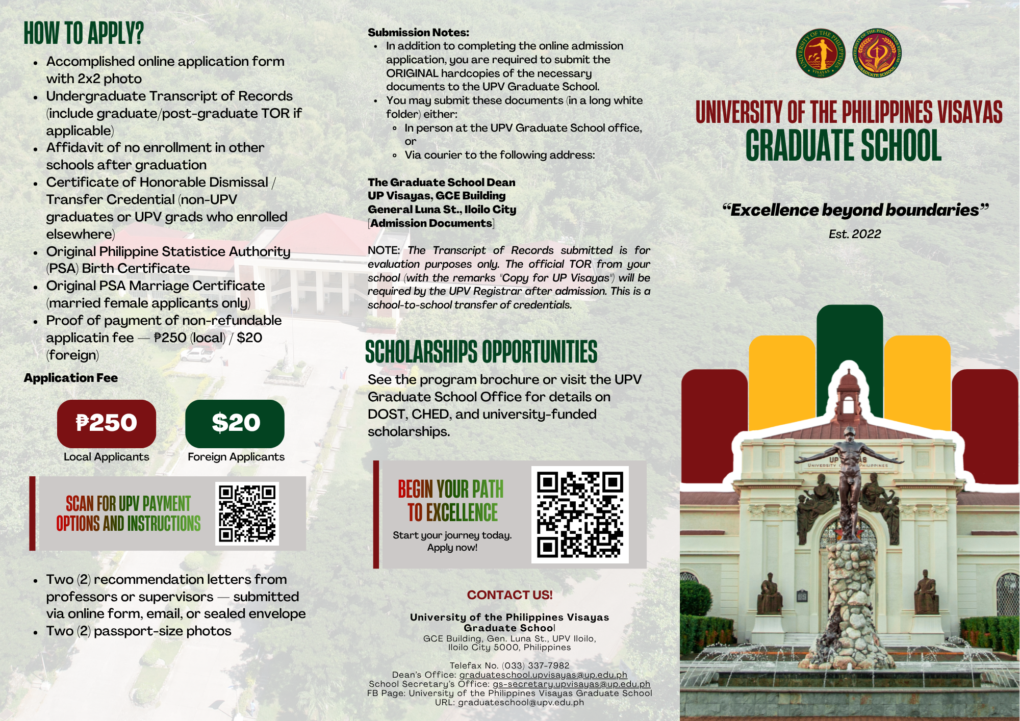 Recommendation letters can also be emailed by the Referee directly to gs-secretary.upvisayas@up.edu.ph, or hard copies inside sealed envelopes may be submitted to the Graduate School office