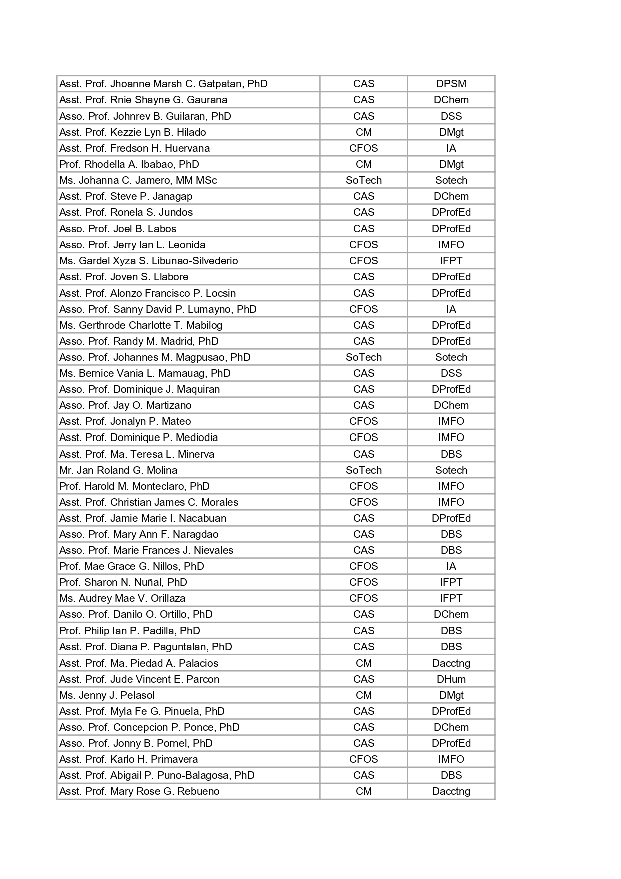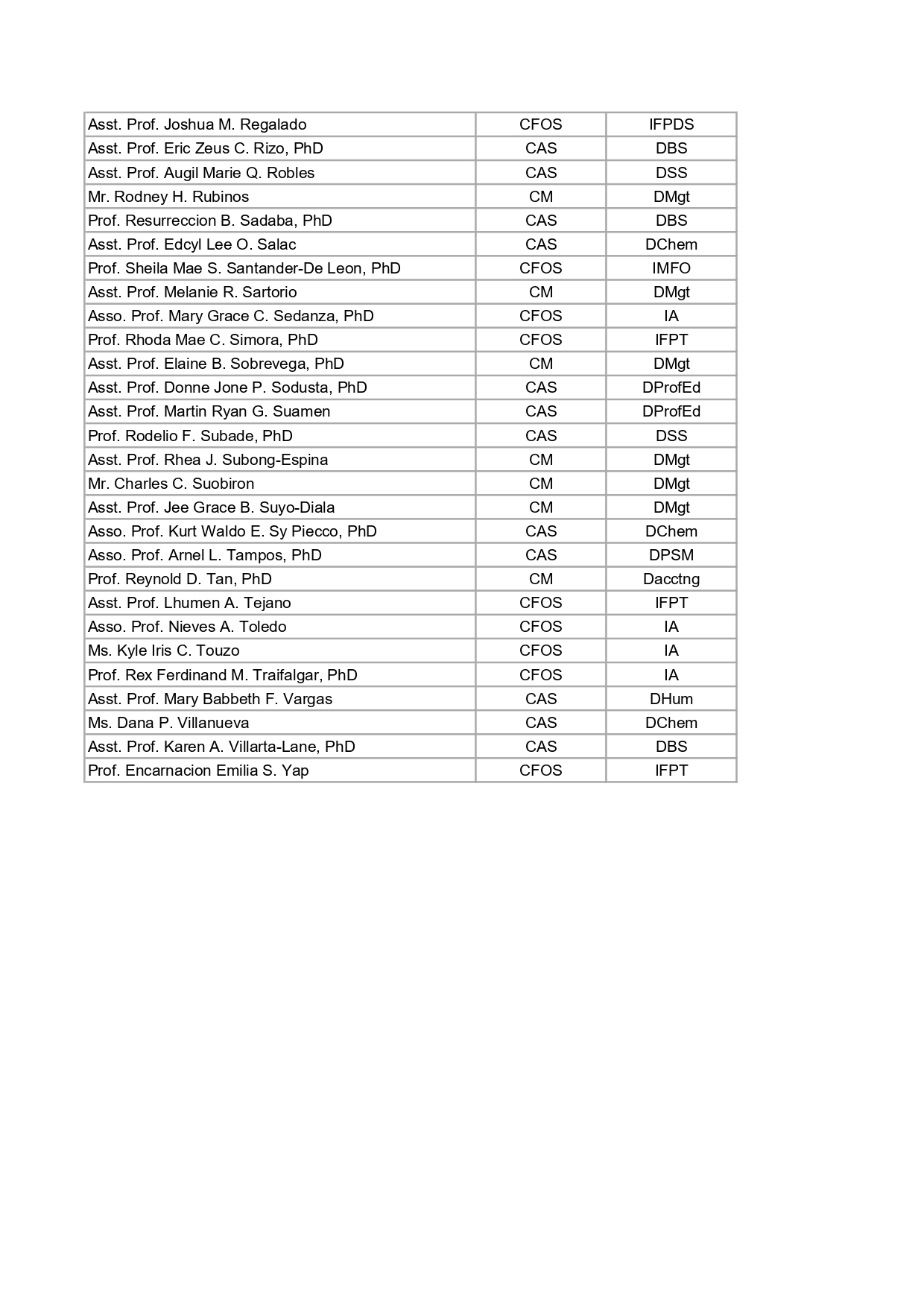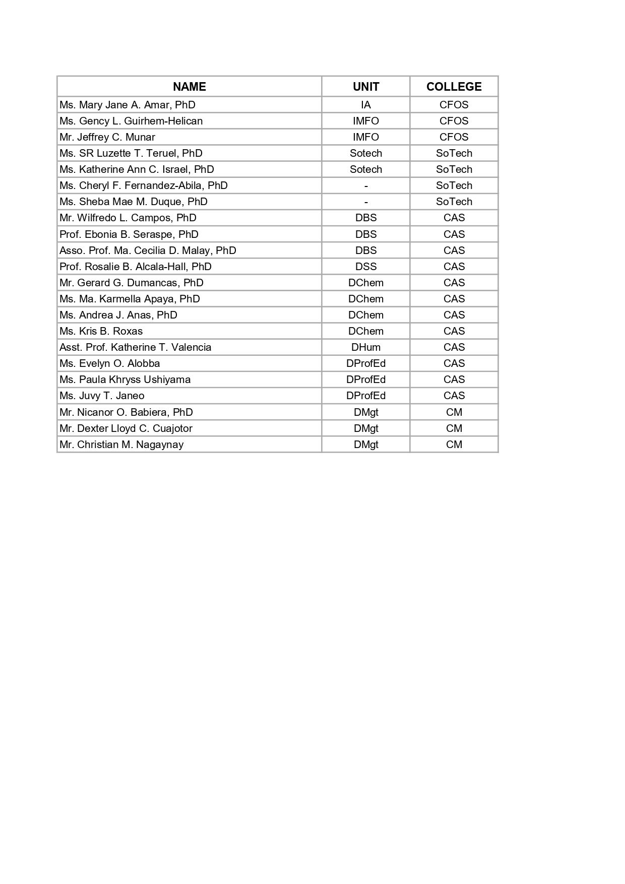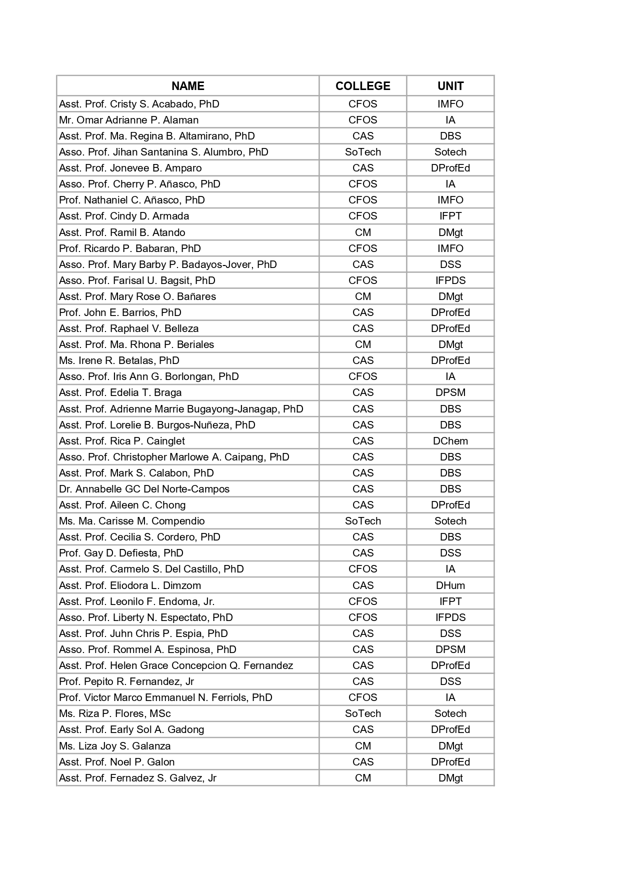 The Graduate Faculty of the University of the Philippines Visayas consists of qualified professionals who are actively engaged in teaching, research, and public service in support of graduate education.