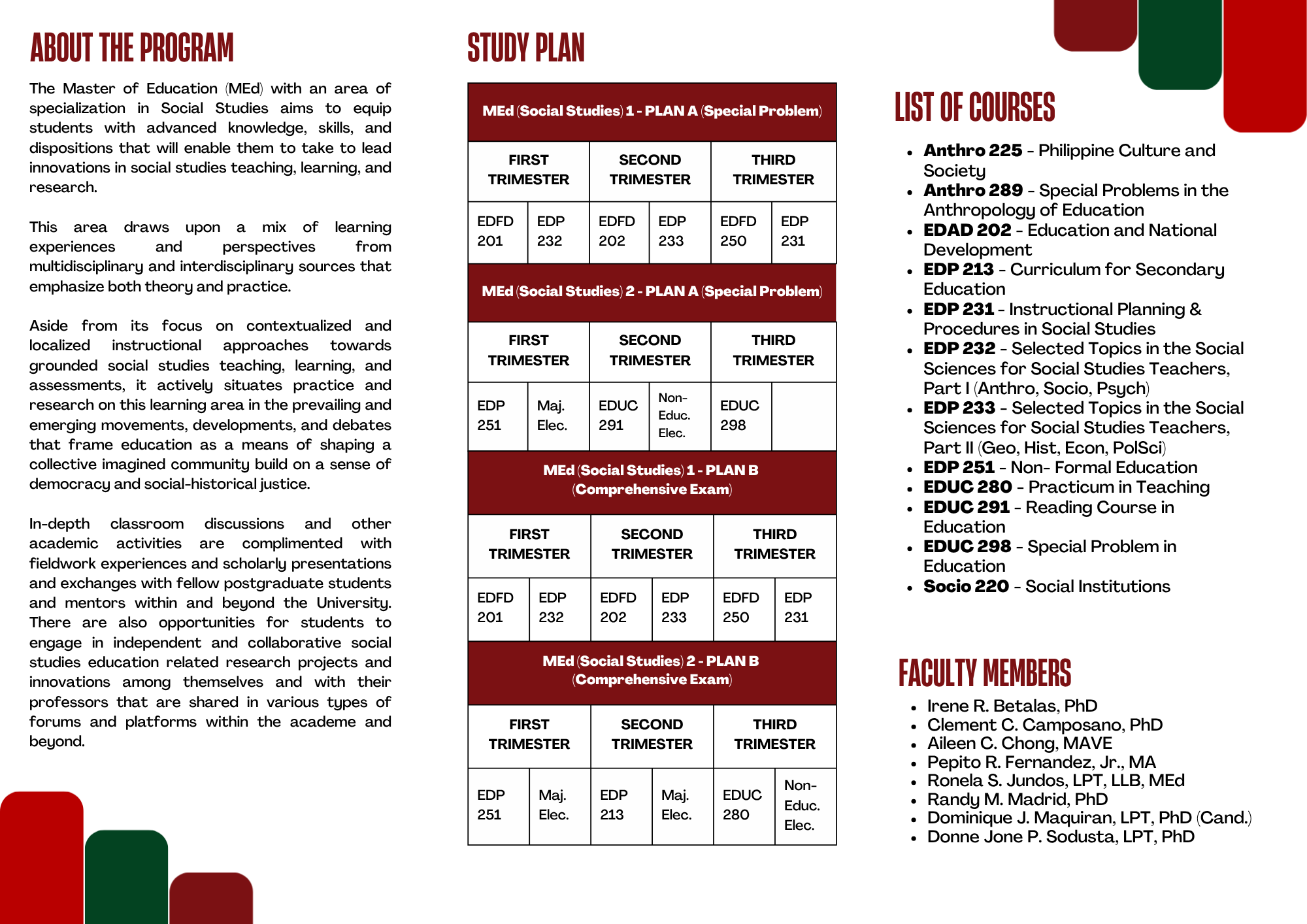 The Graduate Program Coordinators (GPC) is composed of faculty members overseeing a diverse range of advanced degree programs. Each coordinator provides academic leadership and guidance to ensure the quality, development, and effective implementation of their respective graduate programs.