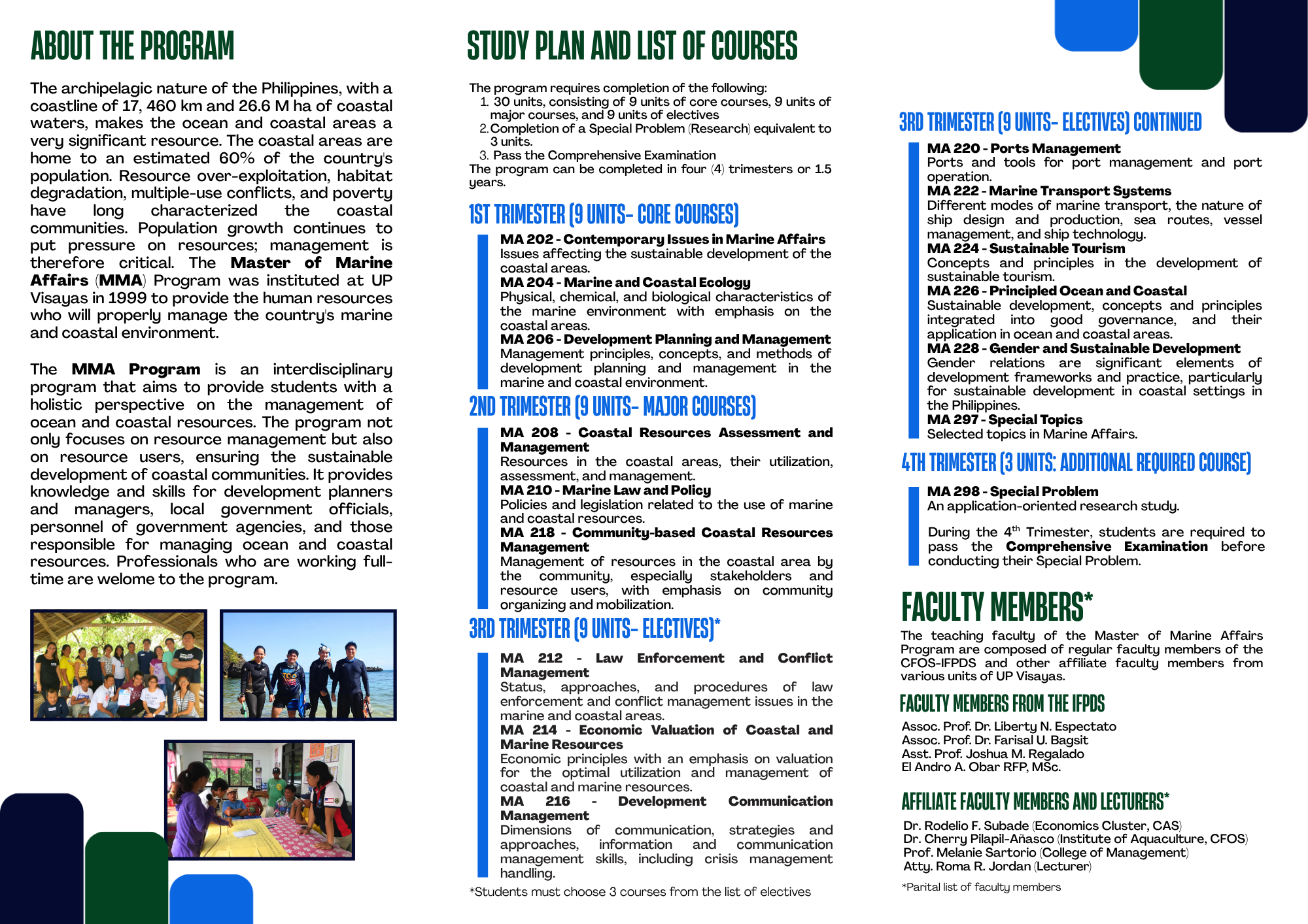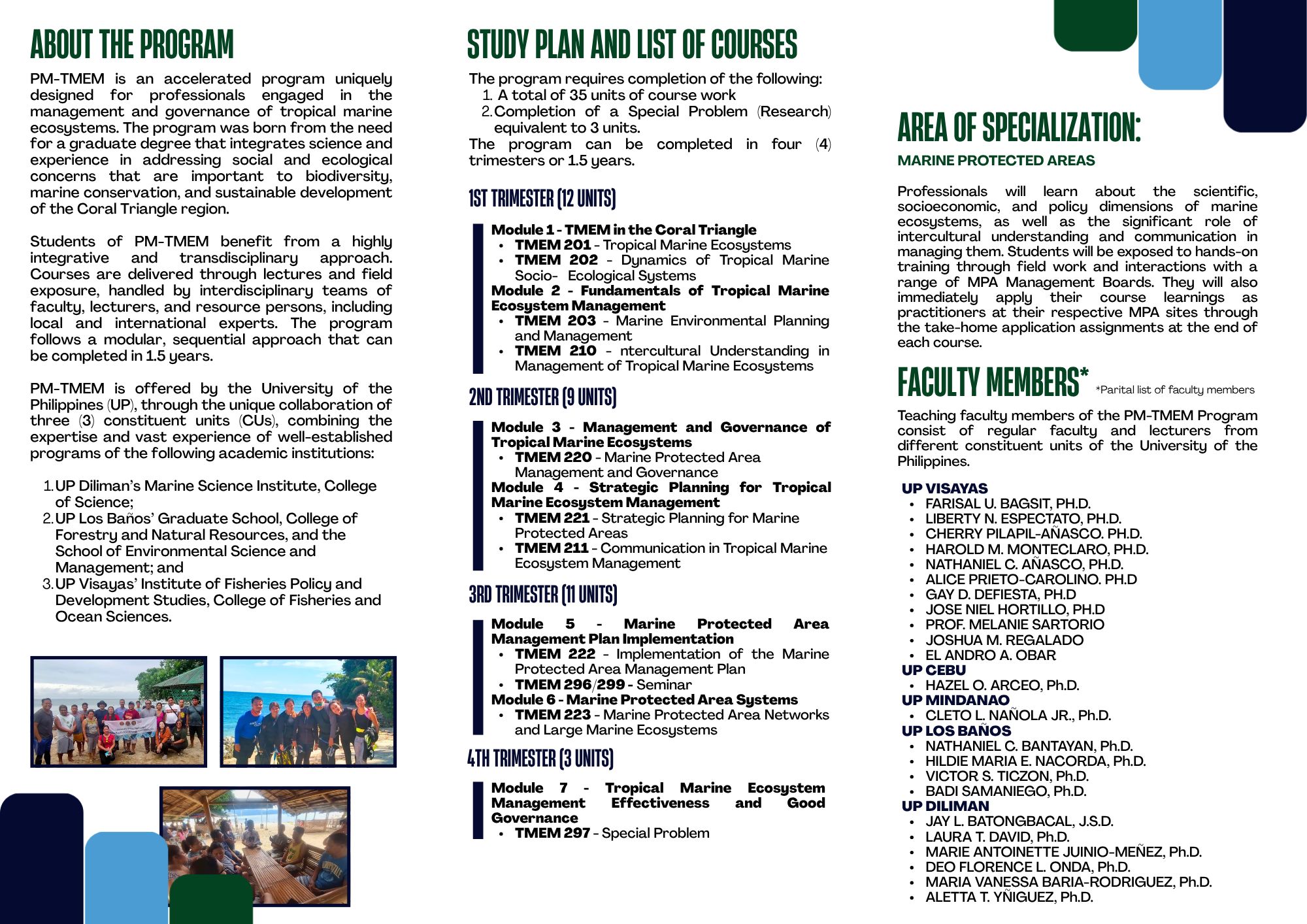 Master of Marine Affairs and Professional Masters in Tropical Marine Ecosystem